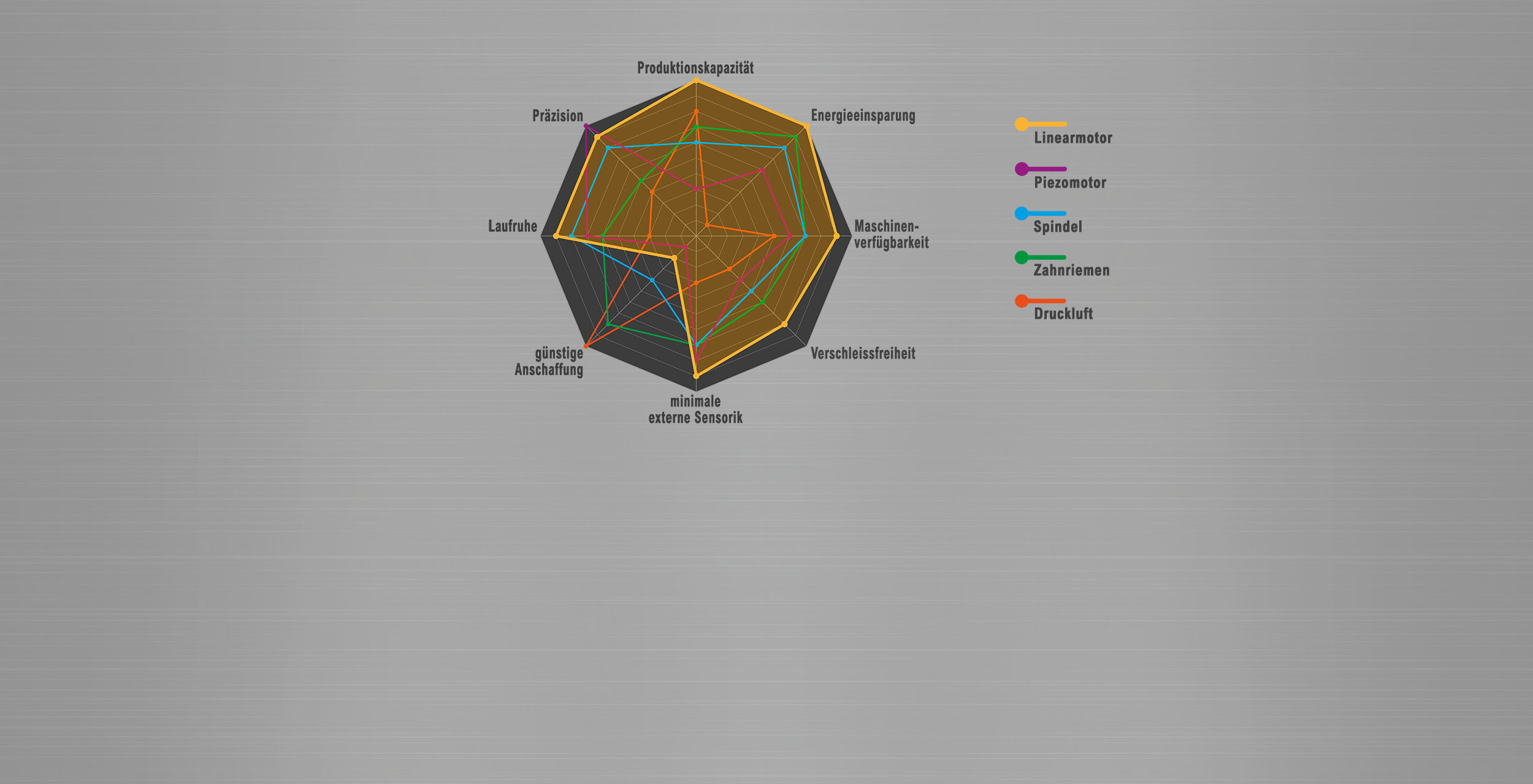 Gegenüberstellung unterschiedlicher Antriebsarten für lineare Bewegungen.